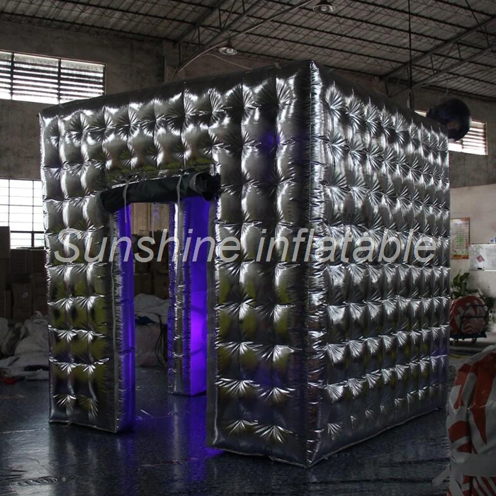 Wonderfull - Shining silvery outer white interior cube inflatable photo booth enclosure inflatable mini tent photo booth studio with LED
