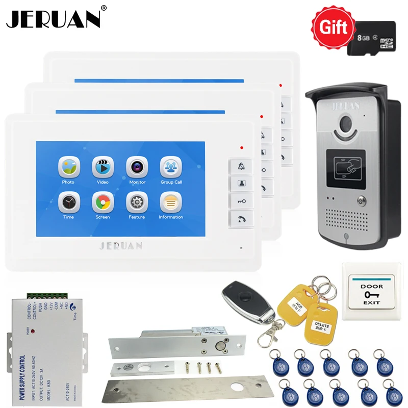 ^Cheap - JERUAN New 7`` LCD Screen Video Doorphone Voice/Video Recording Intercom system kit 3 White Monitors + RFID Access IR Camera 1V3 Wonderfull