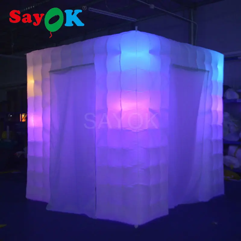 Excellent - cheap colorful 8 ft square wedding led inflatable photobooth inflatable cube tent with GBR bulb with 2 doors opening