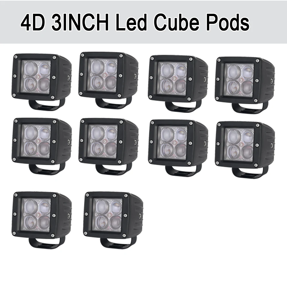 Wonderfull - 10PCS 20W 4D LED Work Light Bar 3x3\ Cube Pods Square Spot/Flood Beam Offroad Driving for SUV ATV 4x4 4WD Truck Motorcycle Boat