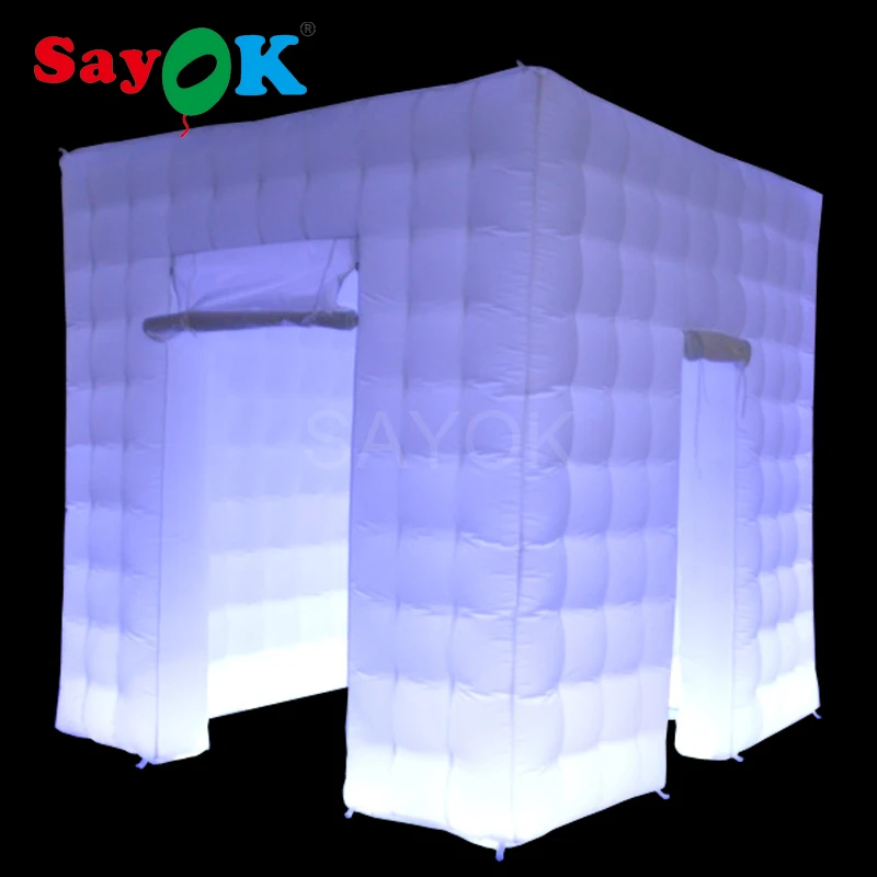 Excellent - Sayok 2.5x2.5x2.5M Inflatable LED Photo Booth Custom Wedding Party Decorations 2 Doors Booth Tent Cube with 17-Color Lights
