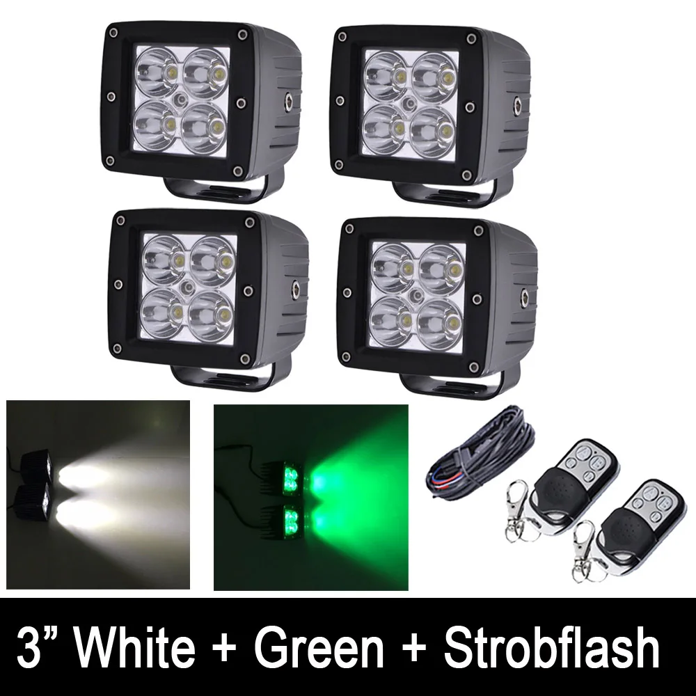 Wonderfull - 4Pcs/set White Green Strobeflash LED Work Light Bar 3X3\ Cube Pods Offroad Spot / Flood Beam Dual Color Switched RF Remote