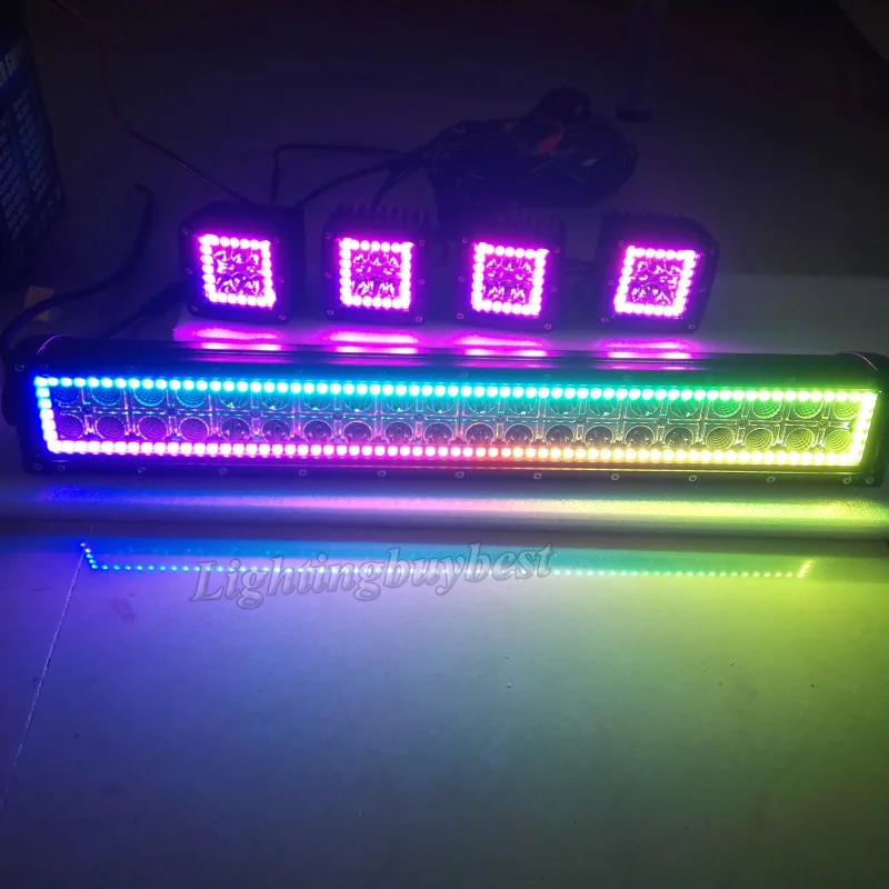 Cheap Online 22\INCH 120W LED Light Bar + 4x 3\ 16W Cube Pods Led work light with RGB Angle Eyes Halo Color Change Chasing for Jeep Ford SUV Wonderfull