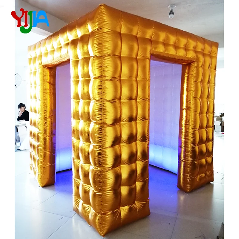 Wonderfull - Brightly shiny Gold Cube inflatable Photo booth with LED lights color changing Portable Photo booth for Party weeding Tent